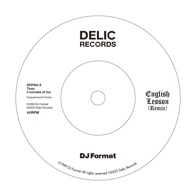 【New : Pre-Order】 【完全受注生産/初回限定プレス】 ※完全受注生産の為、現在のところプレス数未定となります。お渡しはご予約先着順とさせて頂きます。 ※ご購入はお一人様、2枚までとさせていただきます。 ※先行予約特典として定価の100円引とさせていただきます。 ※ご予約頂いても商品がご用意できない場合がございます。予めご了承のほどよろしくお願いいたします。 ※定形外郵便発送を選んでいただいた方へ。郵便発送(保証なし)のためトラブルで商品が未着となっても返金できません。予めご了承くださいませ。 99年、米のターンテーブリスト専科〈Bomb Hiphop Records〉からリリースされた傑作Cut Up ~ B-Boy Breaks!!「English Lesson」。 その4年後にDJ FORMATのファースト・アルバム『Music For the Mature B-Boy』に収録された「English Lesson Remix」が約25年の時を経て7インチ・シングル化(日本限定)! 84年に街角リリースされ世界中のDJ達に衝撃を与えたDouble Dee & Steinskiの「Lesson」。その影響は凄まじく藤原ヒロシ,Shadow,Cut Chemist,Dj Bombjack,Cold Cutらが非公式にシリーズを更新してきた。その系譜にあるのがこの「English Lesson」。 英国のBボーイDJ、 Format!英国におけるクラブ・カルチャーのムーブメントであるノーザン・ソウルやレアグルーヴを背景に、80~90’sヒップホップに影響を受けレコードをディグしてきた彼が前述のDouble Dee & Steinskiの「Lesson」を実践したもの。 ファンキーなブレイク、ハードなドラム・サウンド、キレるスクラッチ、ヒップホップ・マナーなサウンド・エフェクト!Edit & Cut Up ,Samplingを駆使し見事な構成力で構築された緻密なブレイクビーツ!HipHop DJはもちろんB-Boy & B-Girl達が狂喜乱舞すること間違いなしの逸品だ。ハードコアなDJは2枚買い必至!! 完全受注生産 7” 45RPM DEP-002 ¥2300(税抜) ¥2530(税込) リリース 9月末日〜10月上旬予定(変更する可能性あり) A.English Lesson~Remix(7" Edit) https://delicrecords.bandcamp.com/track/english-lesson-remix-45-edit B.Bonus Lesson(7" Edit) https://delicrecords.bandcamp.com/track/bonus-lesson-45-edit DJ FORMAT Profile 英国はサウス・サンプトン生まれブライトン育ちのヒップホップDJ/プロデューサー。90’sヒップホップに影響を受けノーザン・ソウルやレアグルーヴをディグりビート・メイクを始める。そんななかジャーマン・ラッパー、Suspekt「Lost City Of Rap」をプロデュースしたことをきっかけに〈Bomb Hiphop Records〉のコンピレーションに「English Lesson」が収録され話題に。その後〈Mo Wax〉へ参加、DJ Shadowのオープニング・アクトを務めた。03年、ソロ・アルバム『Music For the Mature B-Boy』をリリースしJurassin5ワールド・ツアーのオープニング・アクトを務め、自身のワールド・ツアーも成功させた。05年にはセカンド・アルバム『If You Can’t Join ‘Em… Beat ‘Em』リリース。10年には別プロジェクト、ポスト・モンド・アルバム『Reverse Engineering』をリリース、Gilles Peterson,DJ Spinna, Kenny Dope & Lord Finesseらが絶賛した。12年にはEdan, Mr Lif & Phill Most Chill,Sureshot La Rockが参加したサード・アルバム『Statement Of Intent』リリース。現在も世界を舞台にDJ/リミキサー/プロデューサーとして活躍している。 In 1999, the masterpiece Cut Up ~ B-Boy Breaks!! "English Lesson" was released by the US turntablist label Bomb Hiphop Records. Four years later, "English Lesson Remix" was included on DJ FORMAT's first album Music For the Mature B-Boy, and after about 20 years, it has been released as a 7-inch single (Japan only)! Double Dee & Steinski's "Lesson" was released on the streets in 1984 and shocked DJs all over the world. Its influence was so great that Hiroshi Fujiwara, Shadow, Cut Chemist, Dj Bombjack, Cold Cut and others have unofficially updated the series. "English Lesson" is part of that lineage. British B-boy DJ Format! With a background in Northern Soul and rare groove, a movement in British club culture, he has been digging for records influenced by 80s and 90s hip hop, and this is the result of putting the aforementioned Double Dee & Steinski "Lesson" into practice. Funky breaks, hard drum sounds, sharp scratches, and hip hop sound effects! Intricate breakbeats constructed with amazing compositional skills, making full use of editing, cutting up, and sampling! This is a masterpiece that is sure to make hip hop DJs, as well as B-Boys and B-Girls, go wild with joy. DJs should buy two!! Completely made to order 7” 45RPM DEP-002 ¥2300 (excl. tax) ¥2530 (incl. tax) Release scheduled for the end of September (subject to change) A.English Lesson~Remix (7" Edit) https://www.youtube.com/watch?v=rlBvSbSq8Dc B.Bonus Lesson (7" Edit)
