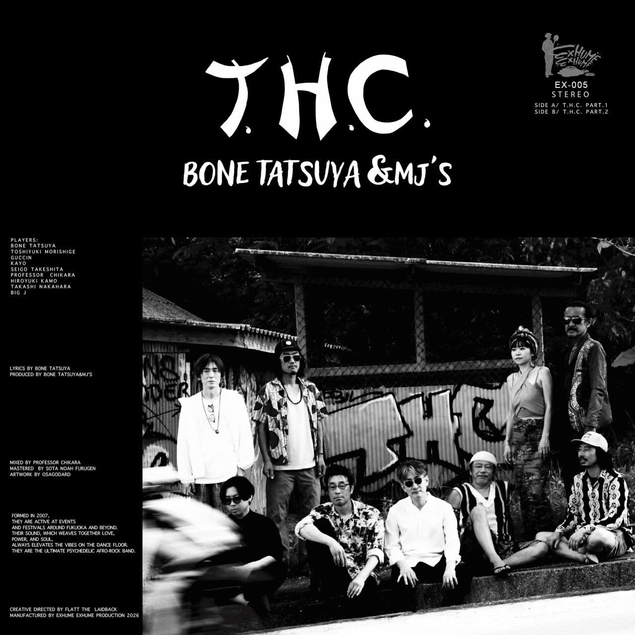 2007年、めんたいロックシーンの最終世代、リビングレジェンドBONE TATSUYAを中心に福岡にて結成された現在9人組。 2010年 CD ALBUM「MJ's.」、2023年 DVD「AT Itoshima」をリリース。 2025年にはタイ Koh Phanganにて単独ライブツアーを成功させる。 SANTANA,FELA KUTI,PINK FLOYD,KING TUBBY,等をはじめとする様々な要素を消化しクロスオーバーさせたサイケデリック アフロ ロックバンド! LOVE,POWER,SOUL,を込めて繰り出すキラーサウンドは常にダンスフロアのバイブスを頂点へと誘う!