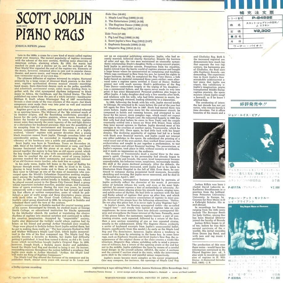SCOTT JOPLIN / スコット・ジョプリンの芸術(LP)